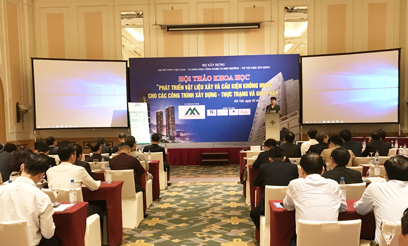 Phát biểu tại hội thảo, ông Phạm Văn Bắc - Vụ trưởng Vụ Vật liệu xây dựng (Bộ Xây dựng) cho biết, việc sử dụng gạch không nung là xu thế tất yếu trong quá trình xây dựng, nhất là lĩnh vực dân dụng và nhà ở trên thế giới nói chung và Việt Nam nói riêng, để đảm bảo giảm phát thải khí nhà kính, giảm tiêu thụ năng lượng, bảo vệ tài nguyên đất là loại tài nguyên không tái tạo, công nghiệp hóa và tự động hóa xây dựng trong thời đại công nghiệp 4.0. Xu thế xây dựng nhà cao tầng tại đô thị là công nghiệp tiền chế và lắp ghép, như thế việc quản lý chất lượng xây dựng đảm bảo hơn, tiến độ thi công rất nhanh, vì vậy cần đẩy mạnh không chỉ sản xuất sử dụng viên xây, mà còn phải đẩy mạnh sản xuất và sử dụng tấm tường tiền chế lắp ghép cho xây dựng.