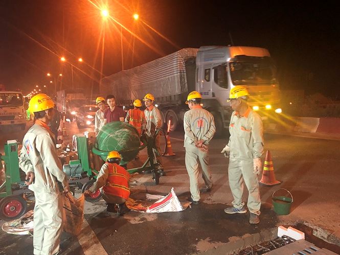 Thông thường, khi thi công hạng mục này, với các vật liệu truyền thống phải mất 24 giờ, thậm chí lâu hơn mới được thông xe. Tại cầu Thanh Trì, lúc sửa chữa khe co giãn, lực lượng chức nặng phải phải phân luồng, xe chỉ đi khoảng 1/4 mặt đường, 3/4 mặt đường còn lại để thi công sửa chữa